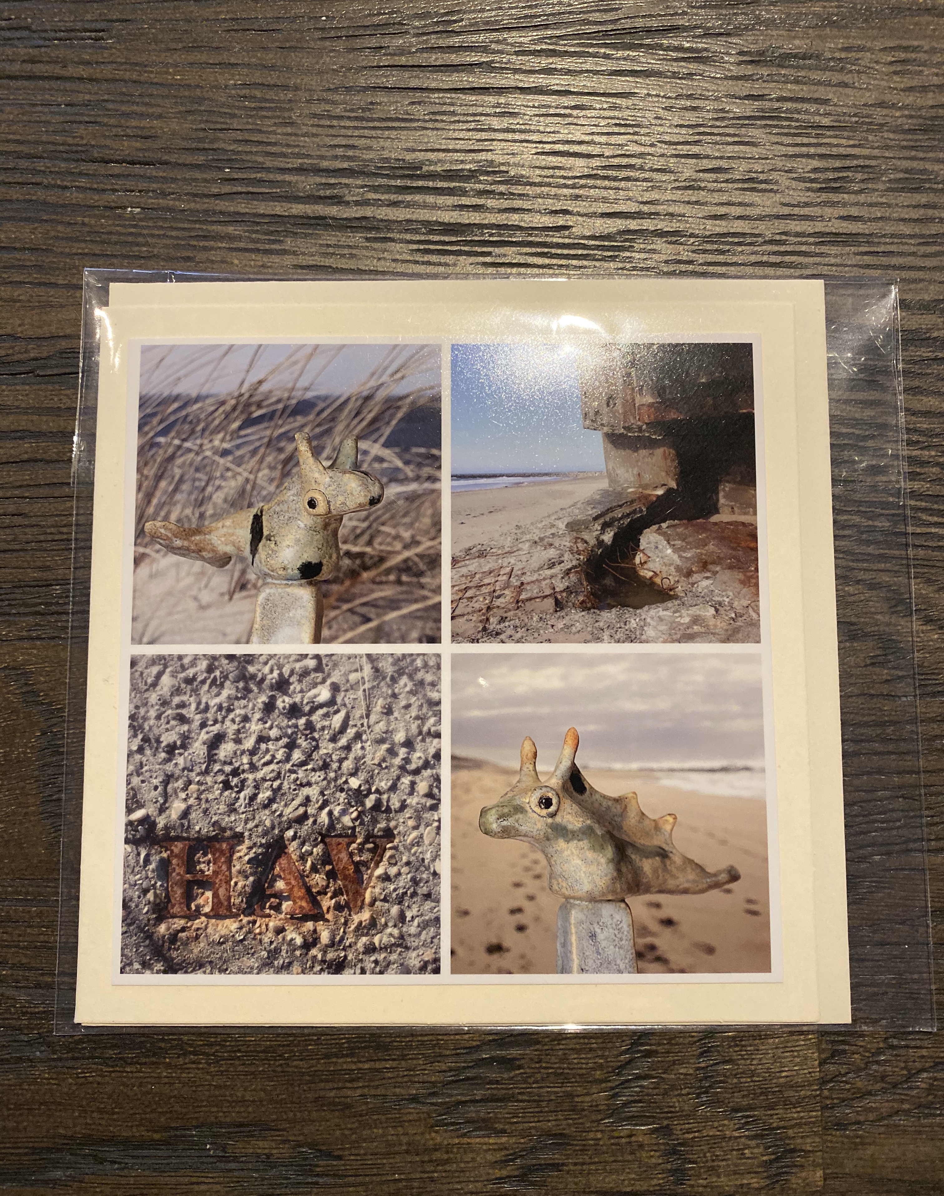 Dobbelt kort med fotoprint med konvolut. Kortet er 13,5 x 13,5 cm.